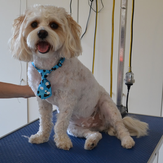 Bondi is a Cavoodle. He has his fur clipped short, nails clipped, ears and eyes cleaned and a wash n blow dry. Pampered by Kylies Cat Grooming Services also all size dogs.