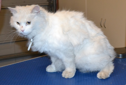 Marshmallow is a Medium hair Domestic. She had her fur shaved, nails clipped, ears and eyes cleaned and a wash. Pampered by Kylies Cat Grooming Services also all size dogs.