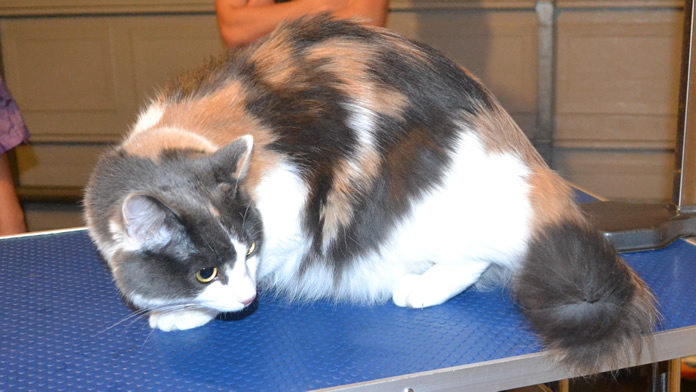 Peggy is a Medium Hair Domestic. She had her fur shaved down, nails clipped and ears cleaned. Peggy sang at the top of her lungs. Such beautiful vocals she has. Pampered by Kylies Cat Grooming Services also all size dogs.
